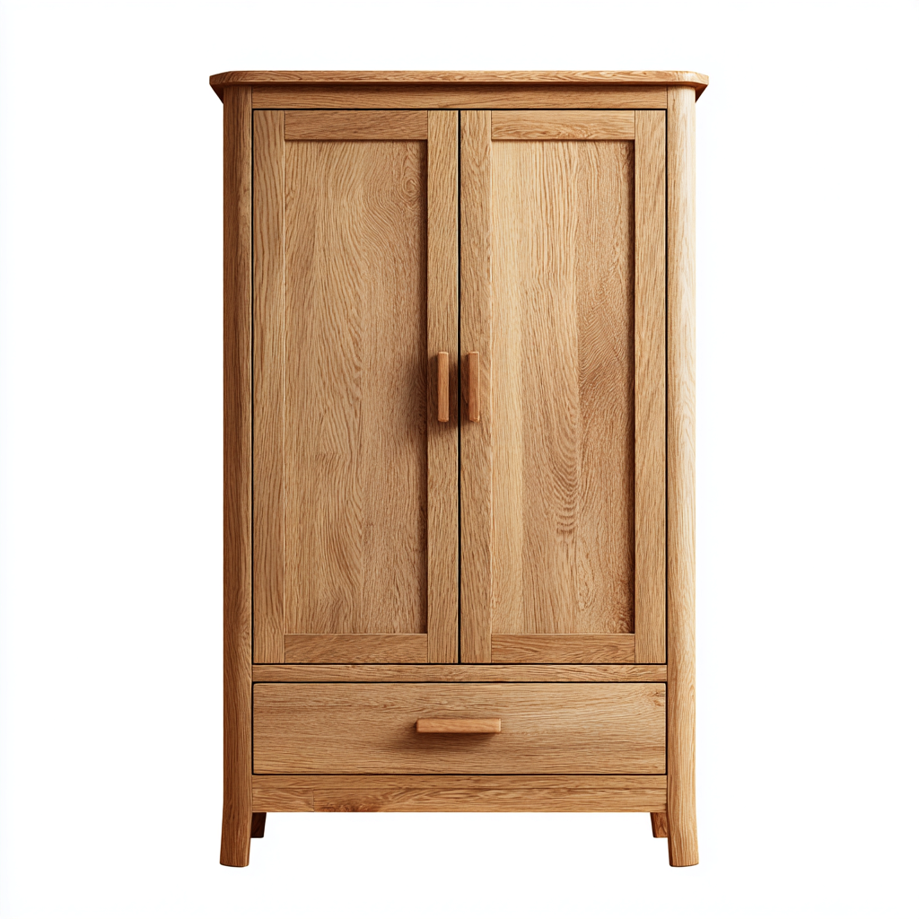 Armario de diseño clásico pensado para el dormitorio, ideal para organizar ropa y accesorios de forma ordenada. Su estructura compacta lo hace adecuado para espacios medianos, manteniendo una estética cálida y natural.