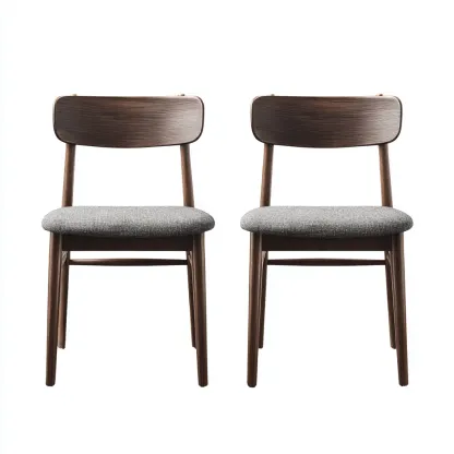 Este conjunto de sillas de comedor presenta un diseño sobrio y equilibrado, ideal para comedores modernos y espacios de uso diario. La combinación de madera y tapizado aporta una estética cálida y actual que se integra fácilmente en distintos estilos de interior.