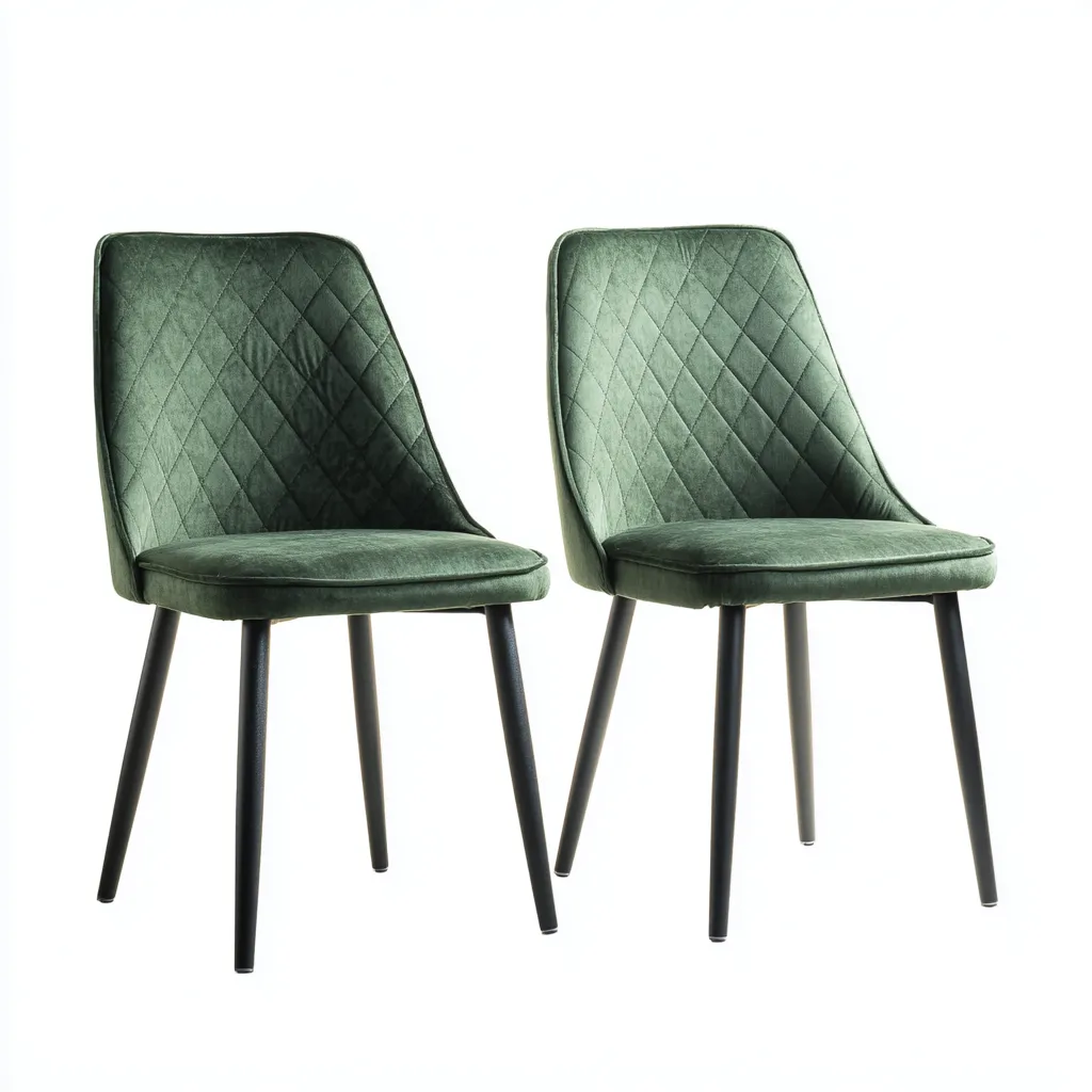 Conjunto de sillas de comedor diseñado para espacios interiores con un estilo moderno y elegante. Su respaldo con costuras geométricas aporta un aspecto decorativo cuidado, ideal para el uso diario en el comedor.